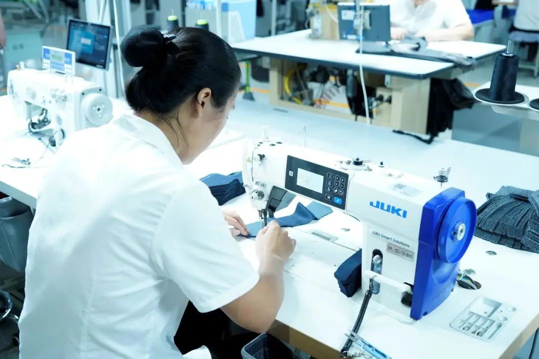 雅戈?duì)柗b生產(chǎn)車(chē)間,通過(guò)自動(dòng)分配生產(chǎn),可顯著減少配對(duì)的時(shí)間成本,單工位生產(chǎn)效率提高25%