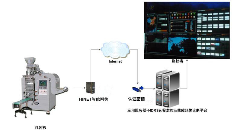 HINET智能網關通過與包裝機等醫藥機械的核心控制器(如PLC等)連接,結合3G、wifi、以太網及GPRS等通信方式并通過華辰智通專有的安全通道實現與服務器連接,實現設備的遠程監控及管理控制,并通過HDRS平臺強大的數據分析能力,分析來自控制器的各種數據,結合客戶自己設定的預警值實現對設備的故障預警及診斷功能。HINET智能網關具有體積小巧安裝方式簡單(導軌安裝)等特點,整套系統無需改變醫藥機械的基本原有構造。