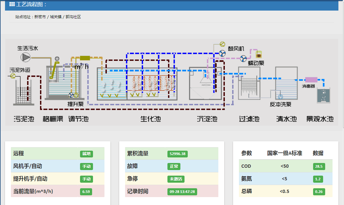 為了解決在工廠在污水中間提升處理過程中存在的能耗、成本、安全、設備管理、勞動生產率等方面的問題,華辰智通推出了”無人值守”污水站智能化遠程管理平臺.通過在污水站重點處理單元乃至全流程實施智能控制,根據進水負荷及運行工況自動執行參數調節,優化運行條件,降低物能消耗,同時發揮區域化集中管理的優勢,采用統一巡檢、集中維修的管理方式.通過設計污水處理站物聯網系統,規劃系統總體架構和重點功能模塊,并結合系統應用從運行監控、報警應急指揮、生產巡檢、設備運維、績效管理等方面,逐步建立“無人值守”的污水站智能化運行管理模式。